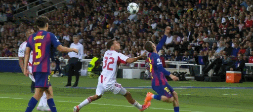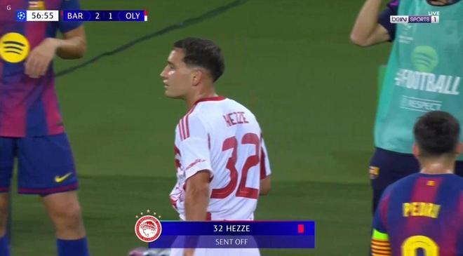 2025年10月22日 巴萨6-1十人奥林匹亚科斯 费尔明戴帽拉什福德双响赫泽染红引争议
